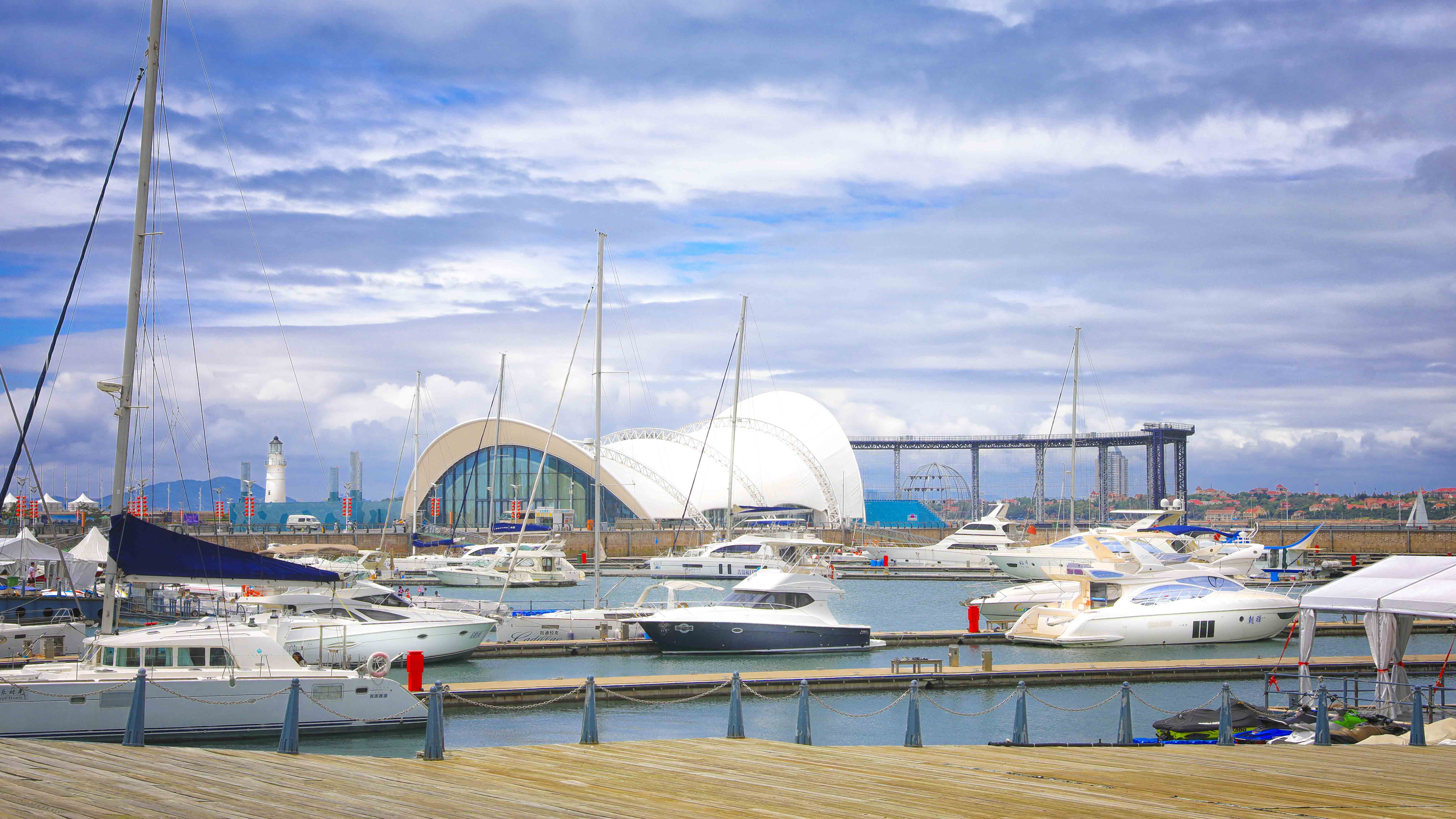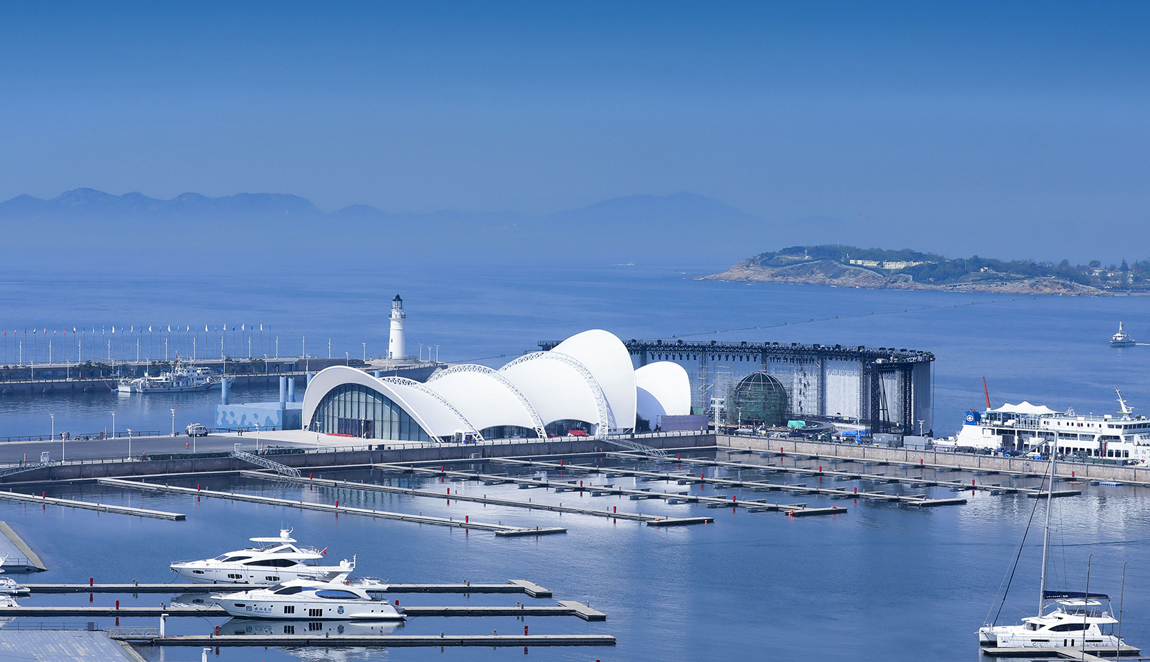 本項目在保留原有建筑主體結(jié)構(gòu)的基礎上,結(jié)合本次會議活動的相關(guān)需求,對其規(guī)模、形象、功能進行改造提升。主題材料采用輕盈的鋼結(jié)構(gòu)與膜結(jié)構(gòu),造型宛如海浪中靈動的風帆,彰顯青島這座海洋名稱、帆船之都的獨特魅力。