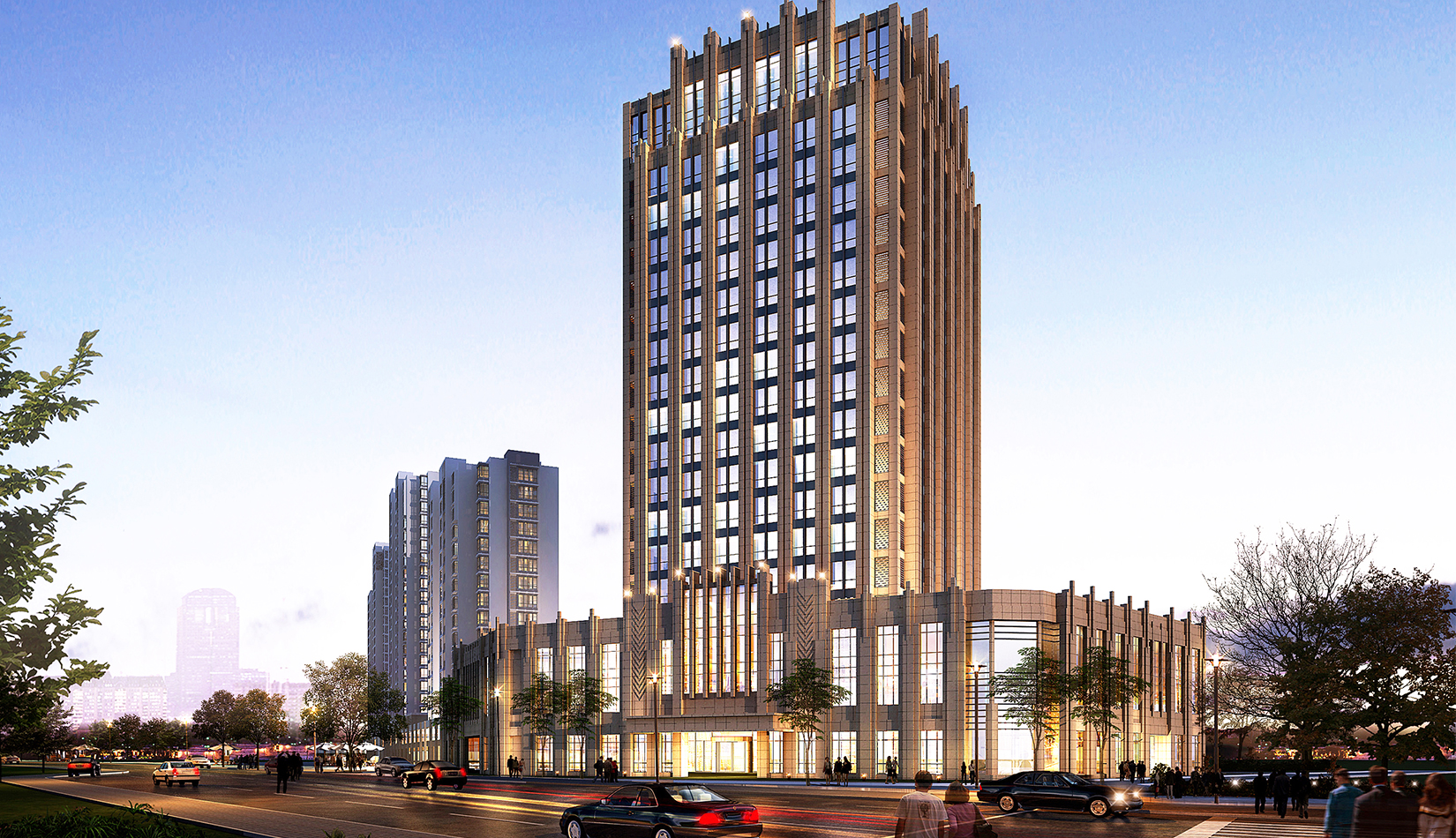 建筑風(fēng)格采用新古典主義建筑風(fēng)格,力求營造莊重、威嚴(yán)的城市建筑風(fēng)格。